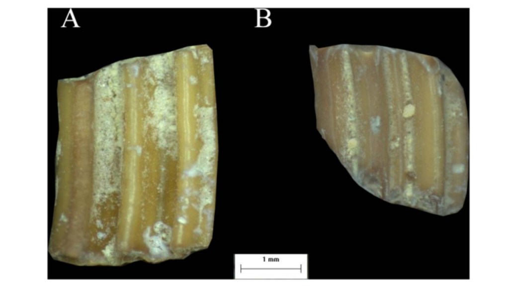 Figure 4: Image A and B are representative of two microtine molars from Ubeidya Israel. Both specimens show signs of wear (Belmaker 2018). However, specimen B shows moderate to high levels of digestion compared to specimen A who does not show clear signs of digestion (Belmaker 2018). This information is important because as it reveals, digestion can severely impact tooth morphology (Belmaker 2018). Ignoring digestion as a probable feature to investigate in microwear analysis, neglects a great deal of the global mammalian population – particularly small mammals that may experience this circumstance at higher frequencies (Belmaker 2018).